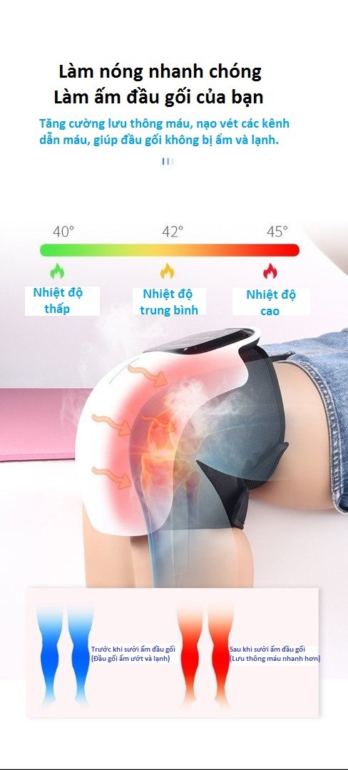 Sưởi ấm khớp bằng nhiệt với 3 mức 40-42-45 độ C