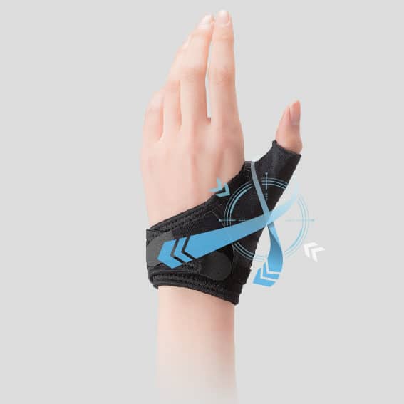 Tích hợp đai chéo để áp dụng vừa vặn nhất với ngón cái, giúp giảm thiểu các chấn thương lên ngón tay cái cho người sử dụng. Nếu không, người sử dụng sẽ khó tự quấn băng và đai có thể bị tuột ra khi chơi thể thao.