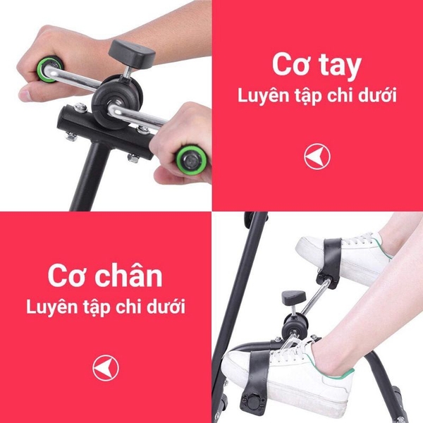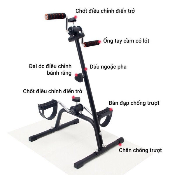 - Bộ phận quay tay và đạp chân có nút điều chỉnh kháng lực nặng nhẹ.