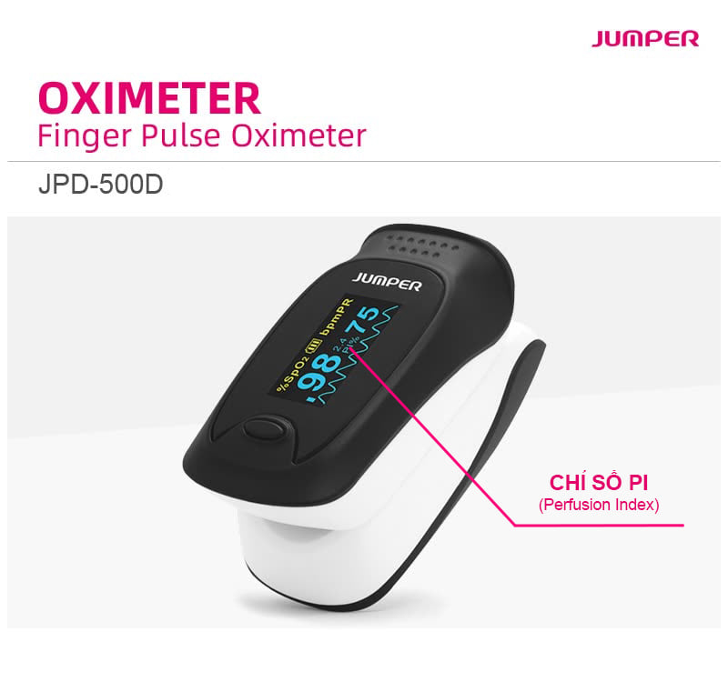 Máy đo nồng độ oxy trong máu Jumper JPD-500D là thiết bị y tế dùng để theo dõi độ bão hòa của oxy trong máu kết hợp với nhịp tim bằng phương pháp cảm biến quang học thông qua đầu ngón tay với độ chính xác cao.
