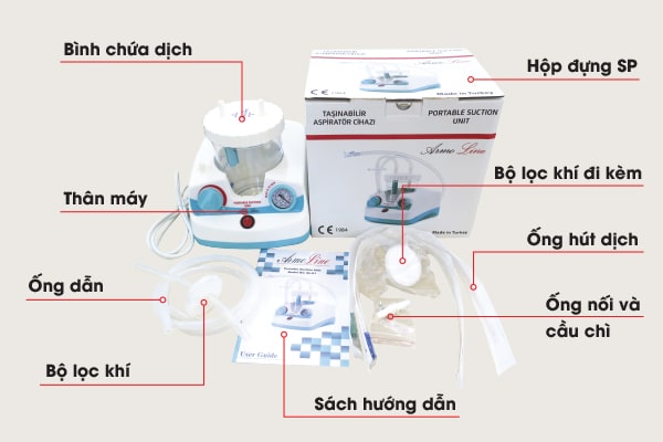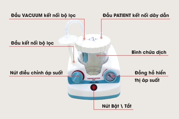 - Ống dẫn (nối giữa đầu Patient với ống hút dịch thông qua ống kết nối)