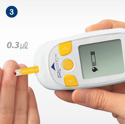 ✅Trích máu ở đầu ngón tay của bạn và sau đó cẩn thận nhỏ giọt máu lên trên que thử và chờ tín hiệu trên que thử hiển thị đã đủ lượng máu hay chưa.