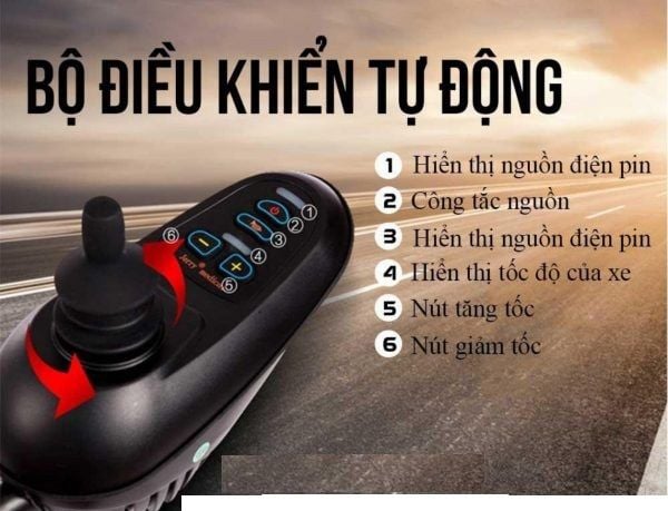 Cần điều khiển thông minh, thao tác dễ dàng: trên cần điều khiển xe lăn điện XE-802 có các nút điều chỉnh tăng giảm tốc độ, kèn báo hiệu, nút tắt bật và hệ thống đèn báo pin và tốc độ chúng ta dễ dàng điều chỉnh các nút bấm và dễ dàng thao tác cần điều khiển khi tới lùi rẽ trái phải.
